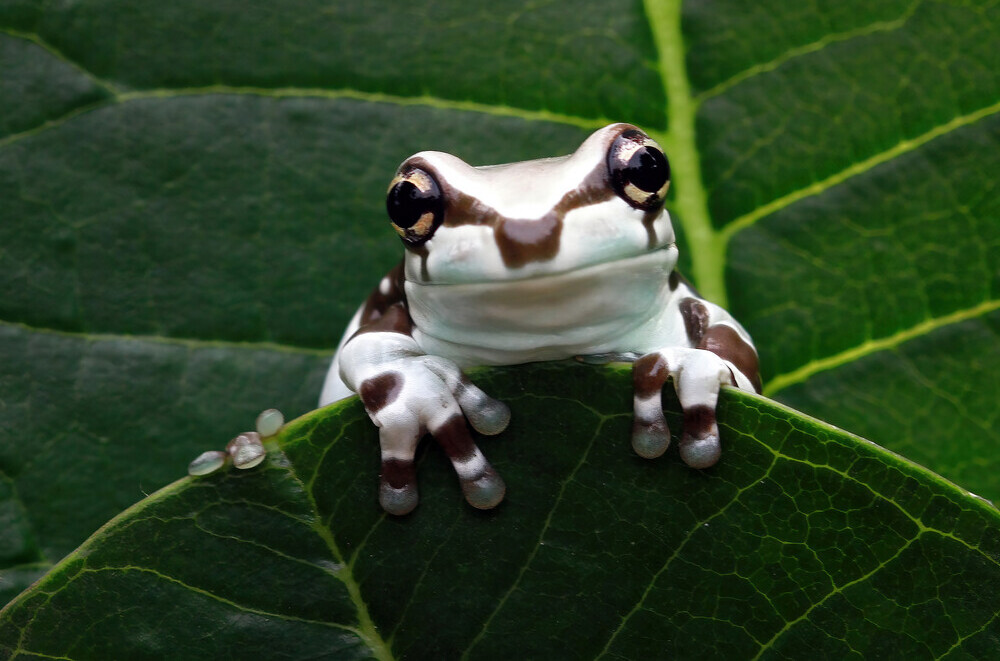 Imagine a frog that looks like it was painted with milk and chocolate milkshakes – that’s the Amazon Milk Frog for you! Known scientifically as Trachycephalus resinifictrix, these amphibians are strikingly beautiful and belong to the tree frog family. They have these cool creamy white and brown patches that make them stand out like a piece of art in the wild.